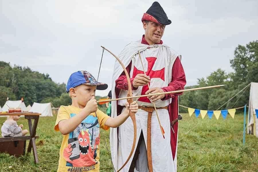Na slavnostech se děti mohou projet na dvou koních v doprovodu s naším vodičem a pak si na střelnici zastřílet z luku či zkusit hod sekyrou.